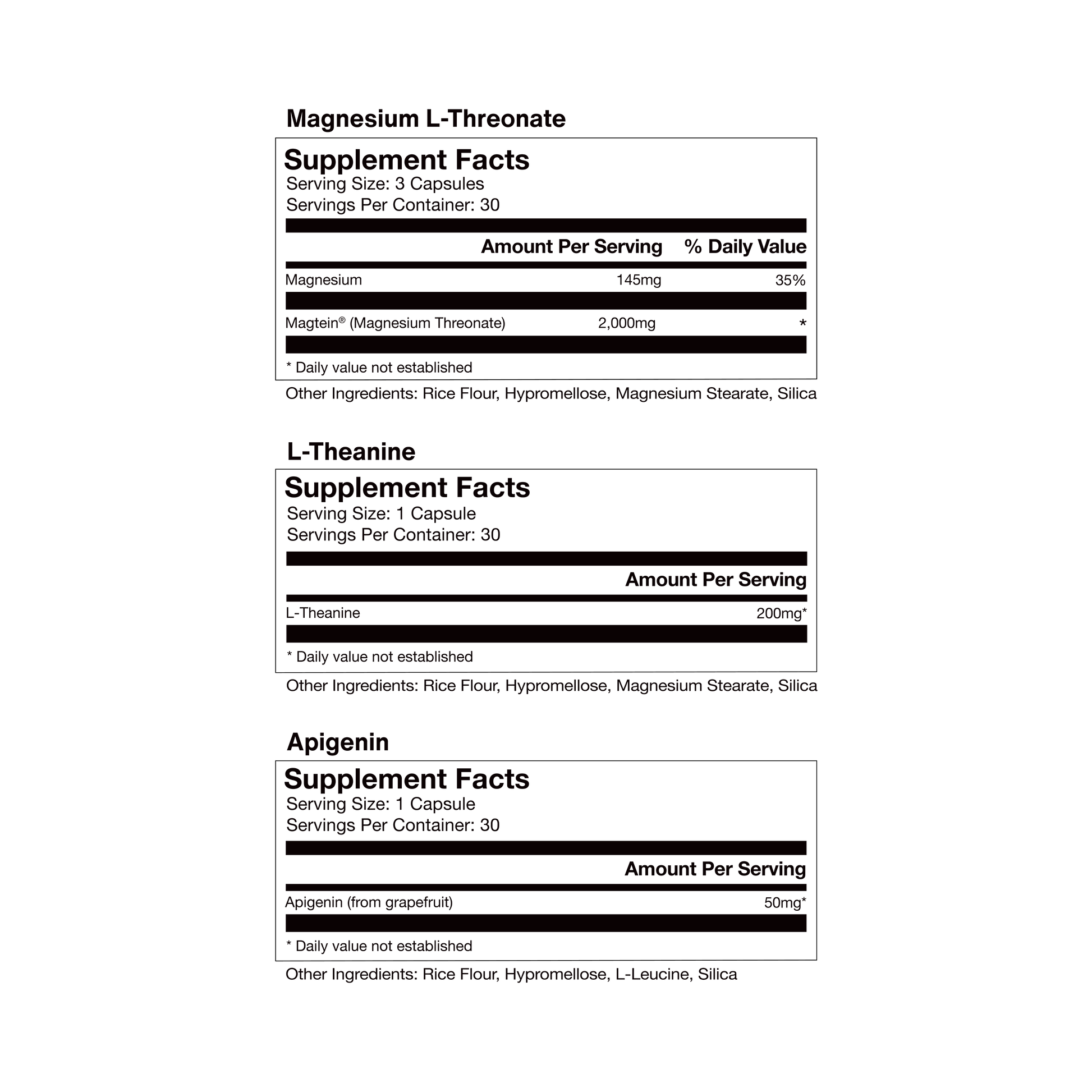 The Sleep 30-Pack delivers a full month of melatonin-free, research-backed sleep support with a calming blend of Magnesium L-Threonate, Apigenin, and L-Theanine. Together, these ingredients help ease the body and mind into a restful state, reduce nighttime wakeups, and promote deeper, higher-quality sleep.