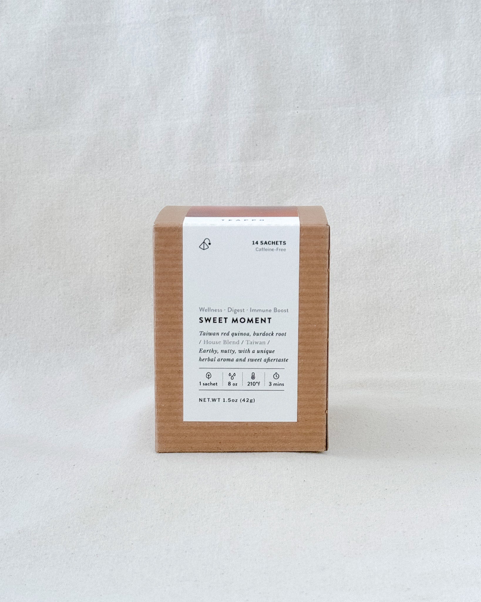 Sweet Moment is a caffeine-free herbal blend that offers a delightful and comforting drinking experience, combining the earthy notes of Taiwan red quinoa with the sweet and flavorful herbal taste of burdock root. Beyond its wonderful taste, this carefully crafted blend is also designed to support your overall wellness, with a special focus on promoting healthy digestion and providing an immune boost.